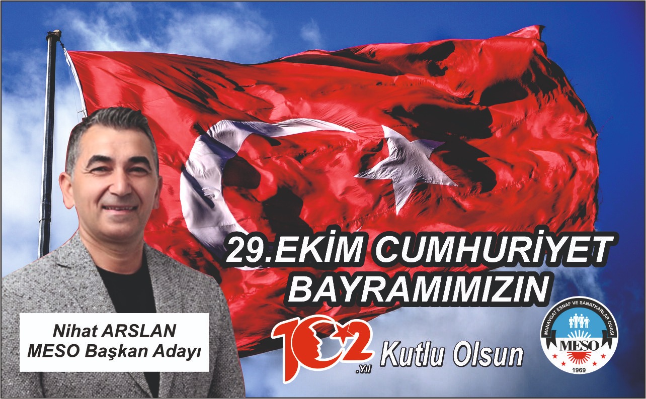 Manavgat Esnaf ve Sanatkârlar Odası (MESO) Başkan Adayı Nihat Arslan, Cumhuriyetin ilan edilişinin 102. Yıldönümü dolayısıyla kutlama mesajı yayımladı.