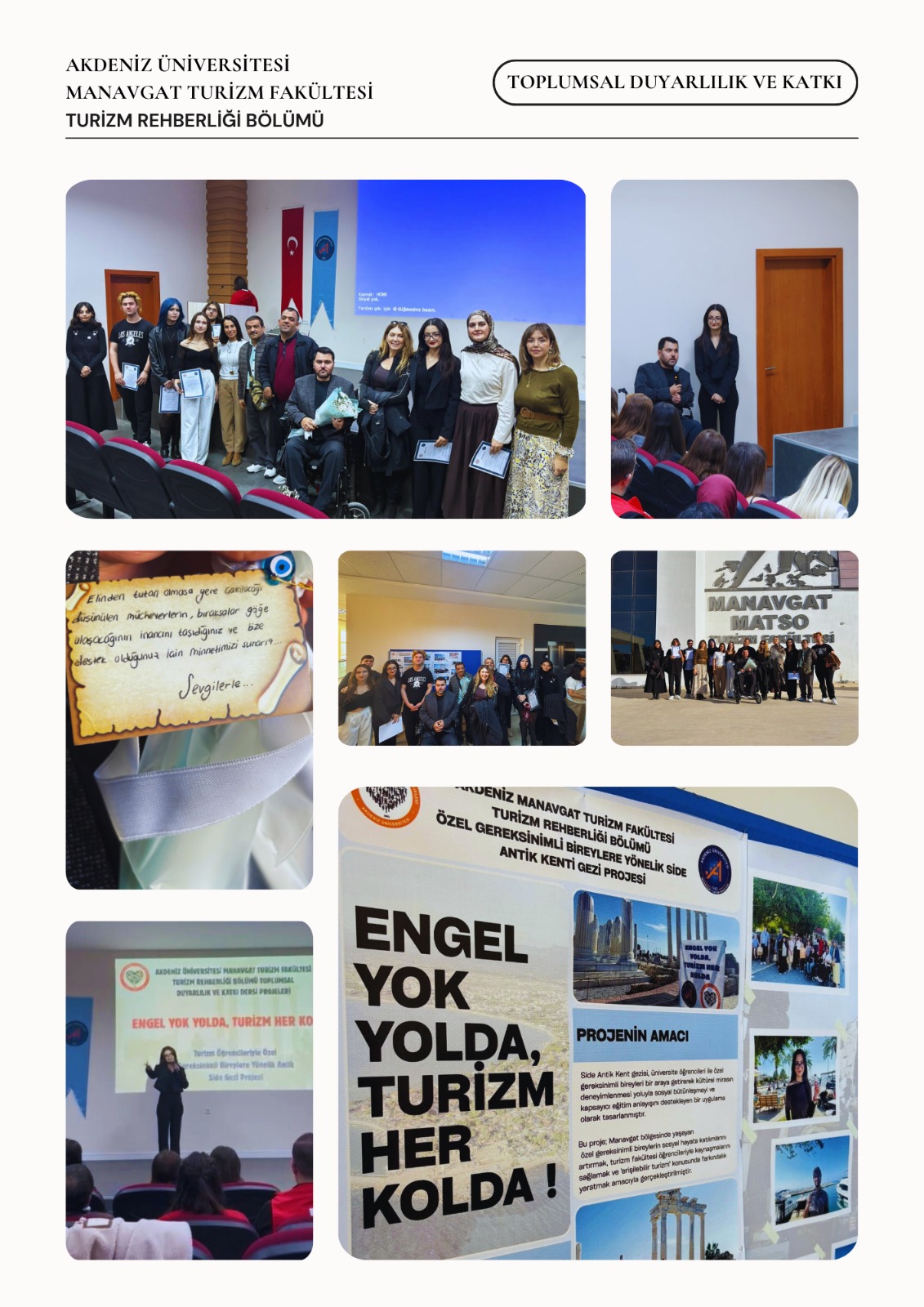 Manavgat Engelliler Derneği yetkilileri, projede emeği geçen başta Turizm Rehberliği Bölümü akademisyenleri olmak üzere tüm öğrencilere teşekkür ederek, bu tür çalışmaların turizmde kapsayıcı ve erişilebilir yaklaşımların yaygınlaşmasına önemli katkı sunduğunu ifade etti.