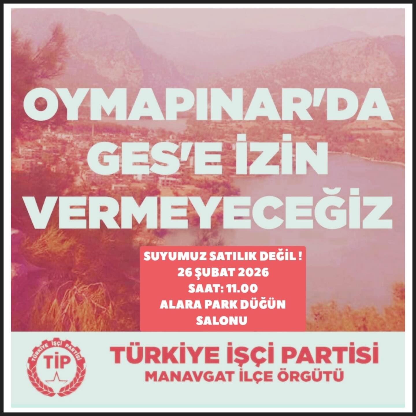 Türkiye İşçi Partisi (TİP) Manavgat İlçe Başkanlığı, Oymapınar, Karavca ve Güzelyalı mahalleleri sınırları içerisinde yapılması planlanan “Manavgat Hidro Elektrik Tesisi ’ne (HES) Yardımcı Kaynak Yüzer Güneş Enerji Santrali (GES)” projesine yönelik düzenlenecek “Halkın Bilgilendirilmesi ve Sürece Katılım Toplantısı’na “ Manavgat halkını davet ederek destek istedi.